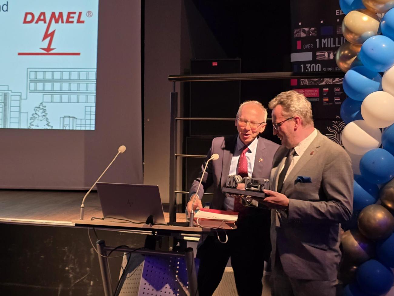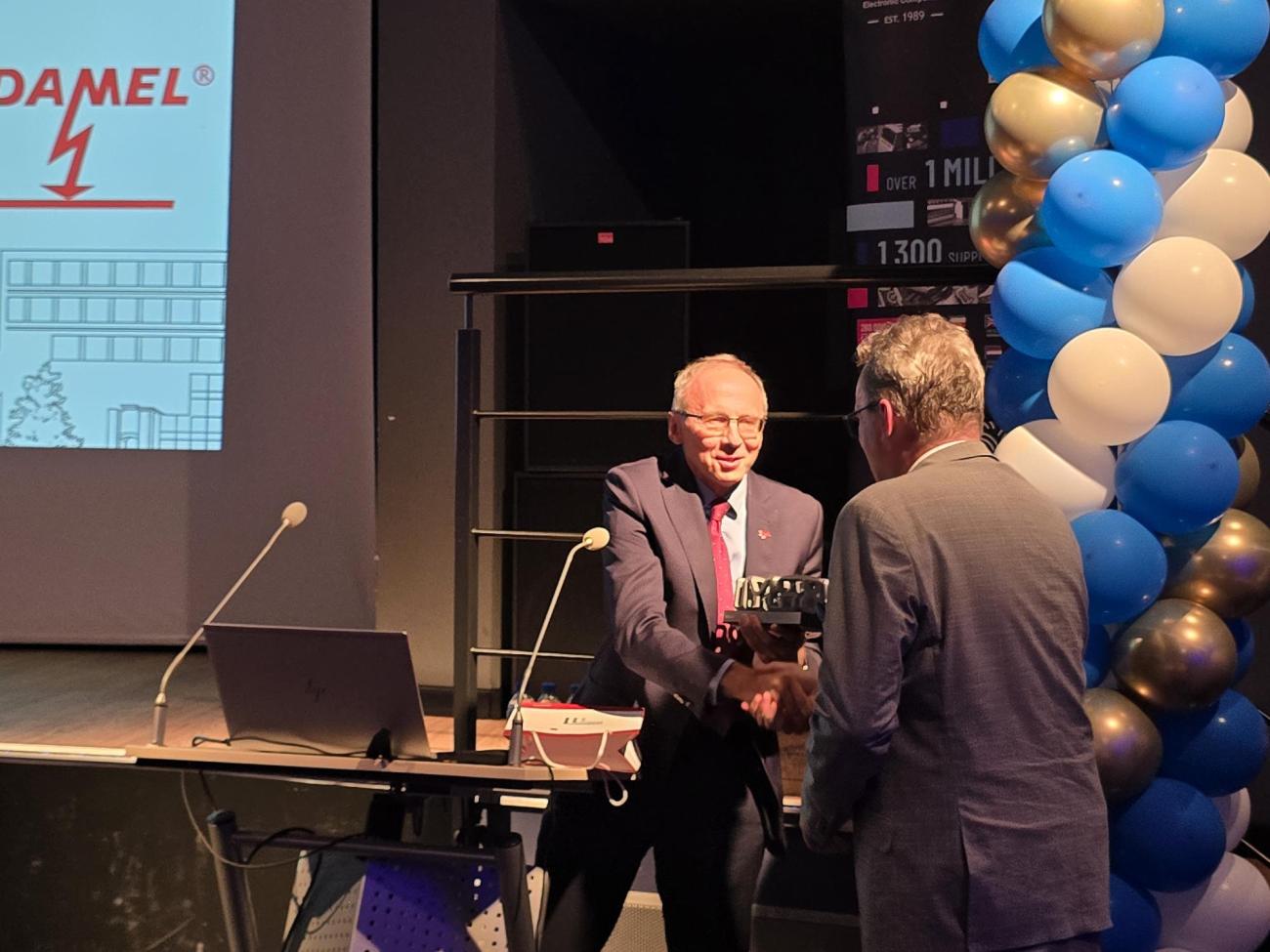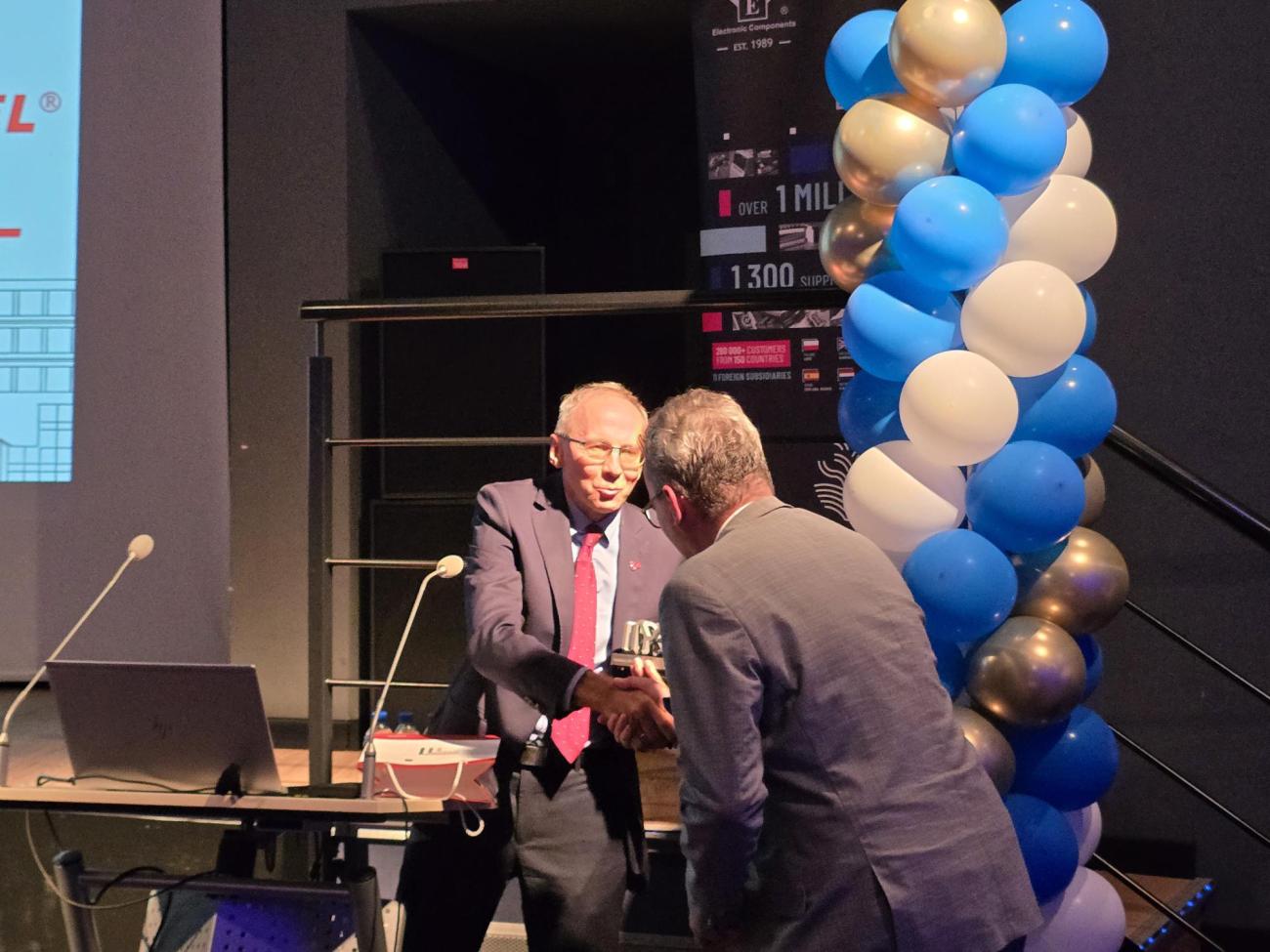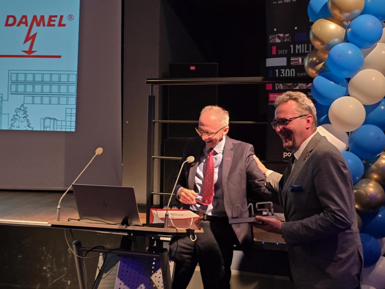 Z naszego Instytutu w wydarzeniu uczestniczył prof. Paweł Strumiłło, który wręczył prof. Łukaszowi Szymańskiemu, dyrektorowi IMSI, pamiątkową statuetkę jubileuszową 🏆. To autorska, unikatowa praca zaprojektowana i wykonana specjalnie na tę uroczystość przez naszych pracowników – Karola Kropidłowskiego i Bartłomieja Sztylera 👏💡.