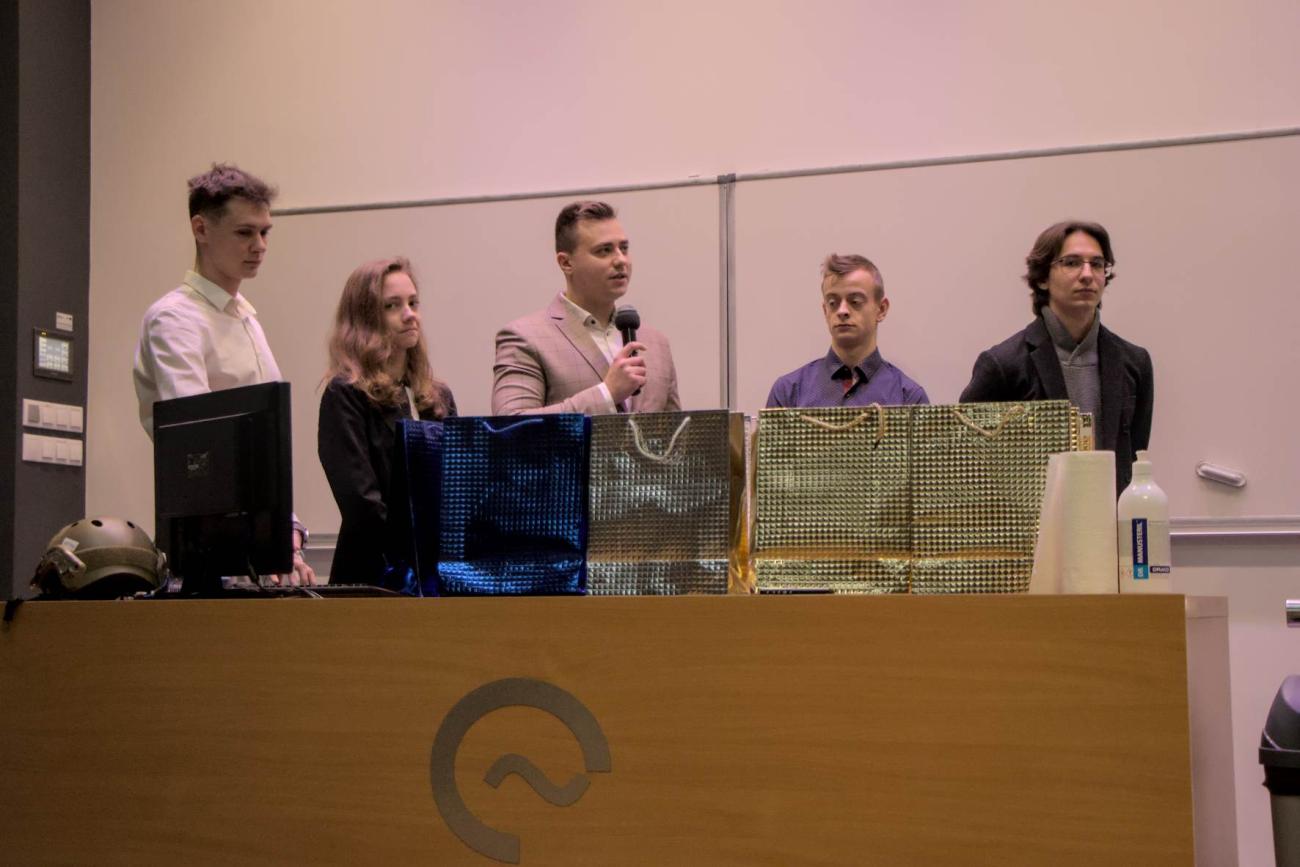 🥇 I nagrodę zdobył zespół studentów kierunku Elektronika i telekomunikacja w składzie: Kornelia Bendzel, Błażej Koziełek, Łukasz Zawada, Krzysztof Tomczak, Kryspin Bogus, pod opieką dr hab. inż. Łukasza Januszkiewicza, prof. uczelni, za projekt pt. „Bezprzewodowy system transmisji danych z kamery noszonej”.