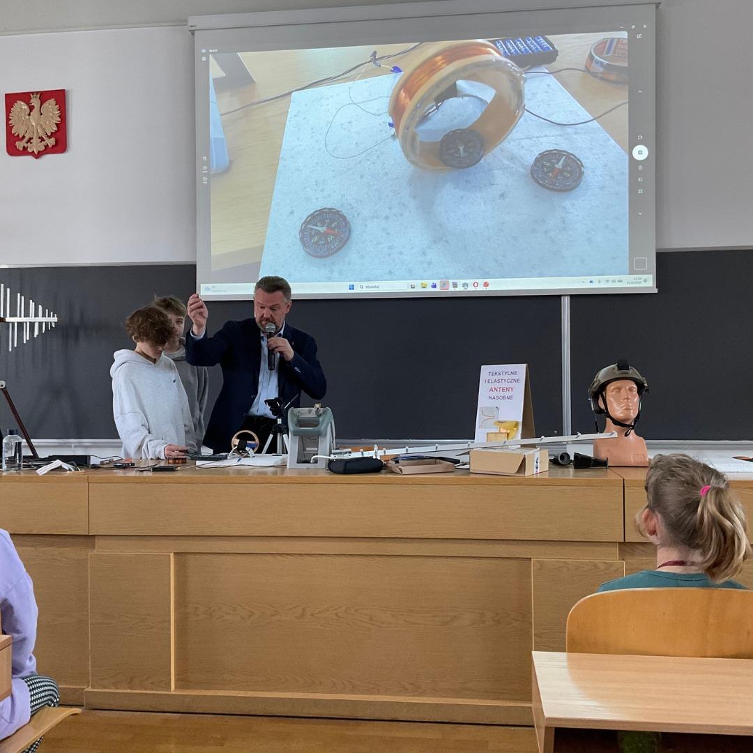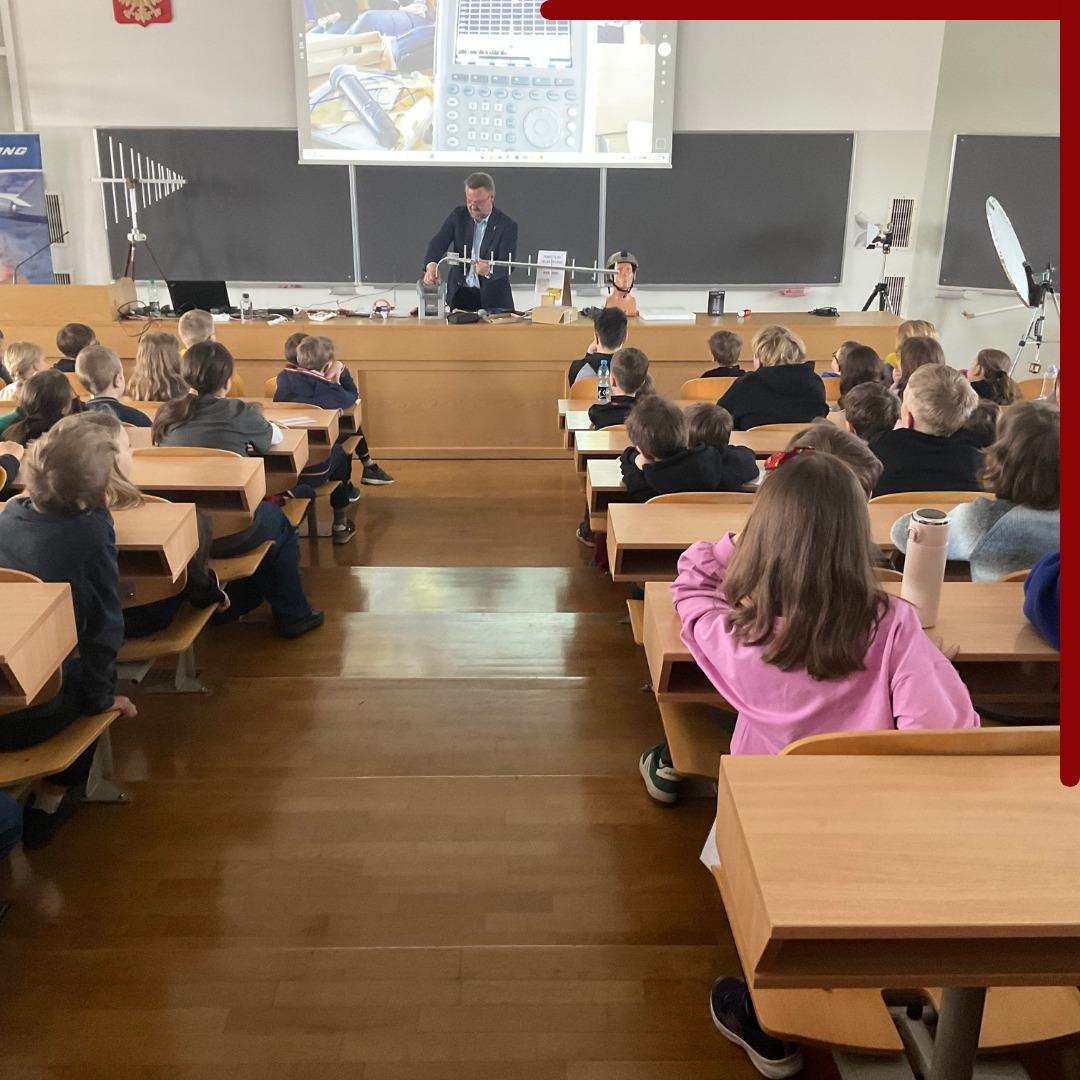 The lecture titled “Do smartphones have antennae?” was delivered by Dr. hab. Eng. Łukasz Januszkiewicz. In a highly accessible yet scientific way, he explained to the young participants how antennas work 📡 and why they are a key component of every smartphone 📱